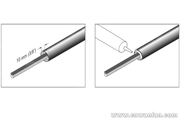 6、使用RTV密封胶密封电伴热带烟气采样管两端,保持距离在10mm,确保所有裸露的电伴热带完全密封,不会进水受潮,已得到很好的绝缘保护作用,如图4。