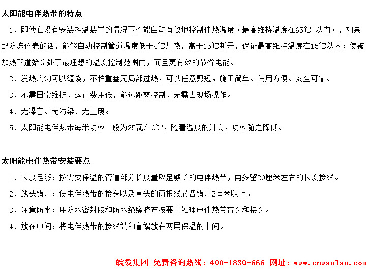 ① 伴热管缆(采样复合管)在储运、安装时,尽量避免在地面拖拉或浸入水、油污中,以免损坏护套和绝缘层。 ② 伴热管缆(采样复合管)在安装前后,均应对自限温伴热带和恒功率伴热带进行电性能测试,线芯绝缘电阻>20MΩ为宜。在天气阴潮湿度大的情况下可放宽到>2MΩ,在<2MΩ是要查清原因,方允许送电投运,上下工序要求···