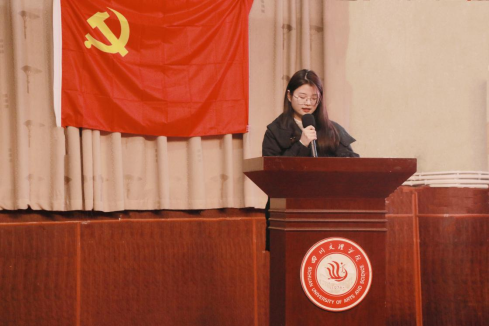 “青年聚微光,我想要成为一束光,我想要以身作则,发挥青年作用,向老党员学习,以严格标准要求自身,帮助身边更多的青年朋友积极向党组织靠拢。我们与历史同向同行,与时代同频共振,更应加强思想淬炼,筑牢信仰之基。我也希望自己能够争取早日加入共产党,在思想上行动上请党组织考察。”学校第65期入党积极分子2022级霍静作为代表在会上发言并表态。