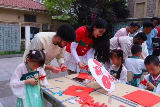 开幕式后,留学生参与了走进课堂活动,体验雕刻和剪纸等中国非物质文化遗产,同时为通川区一小莲湖学校学生讲解了富有地域特色的英语课程,这种互动式的教学模式不仅让通川区一小学生感受到了英语学习的趣味性,更深化了留学生对中国文化的理解和认知。