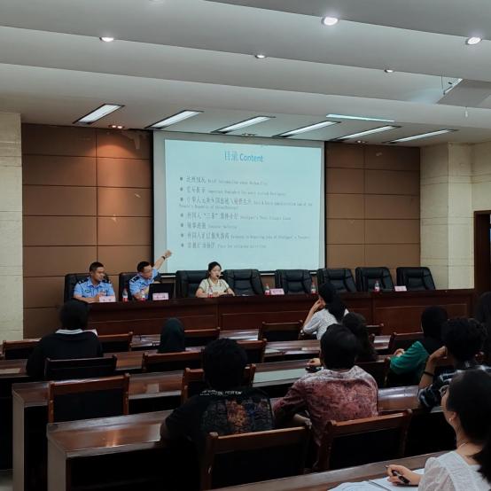 会议由我校国际交流处周静老师主持。达州市公安局出入境管理支队支队长李伟为留学生普及中华人民共和国出境入境管理法,指出外国人在中国居留、旅行时应当遵守的相关法律法规并且还对外国人“三非”案件进行解释分析。最后阐述领事通报相关法律知识。