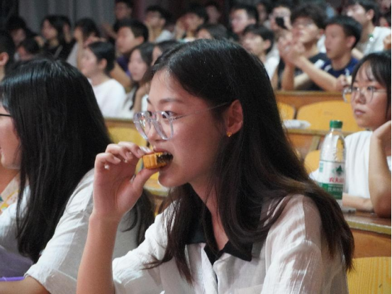 同时,晚会期间,学院还为同学们精心准备了月饼以及各种小零食,并设置游戏互动环节,通过猜灯谜、歌曲飞花令、看emoji猜成语以及数字炸弹等趣味活动,并通过发放奖励激发现场热情,让每一位观众都能亲身参与其中,享受晚会带来的乐趣与惊喜。