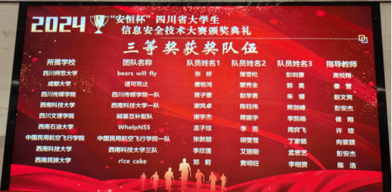 我院学子在2024年“安恒杯”四川省大学生信息安全技术大赛中荣获奖项