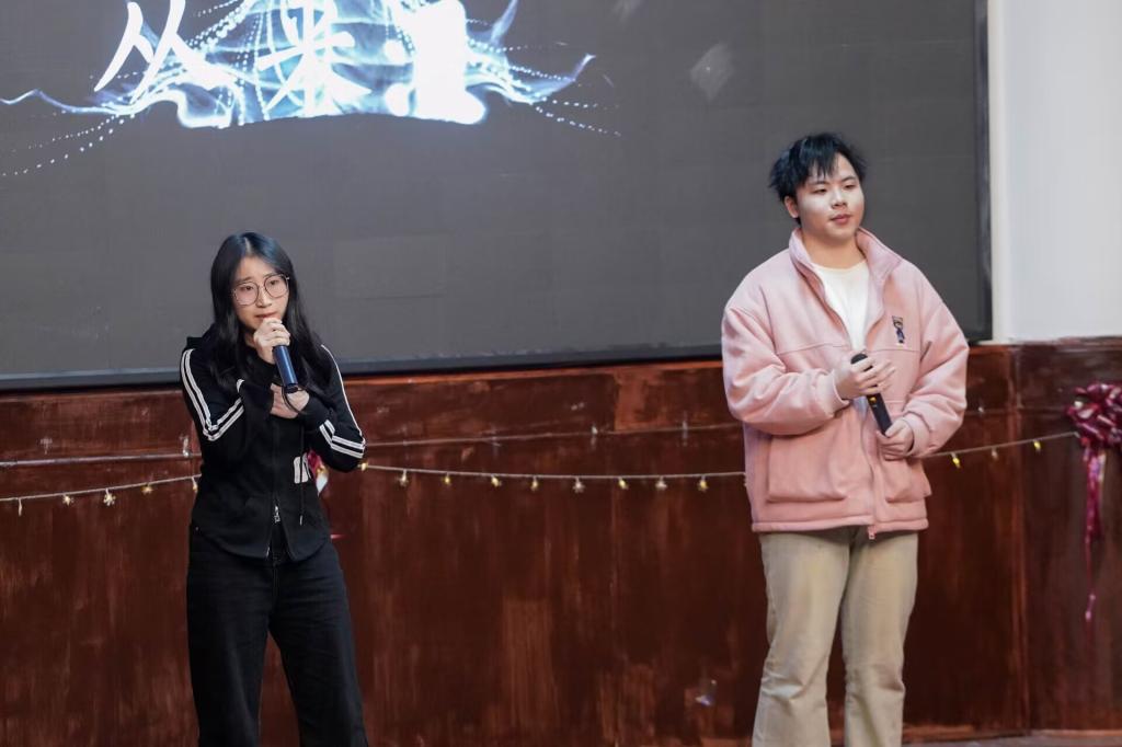 青春力量,歌曲启航。在青春正能量的驱动下,歌曲《于是》悠扬响起,传递着青春的不竭力量。话剧《时间都去哪了》以深刻的寓意揭示了时间的宝贵,警醒同学们勿让拖延消磨时光,强调“莫让晨光在慵懒中消散,勿使夜静无意义消遣”。这不仅是时间的警钟,更是对青春价值的深刻省思。