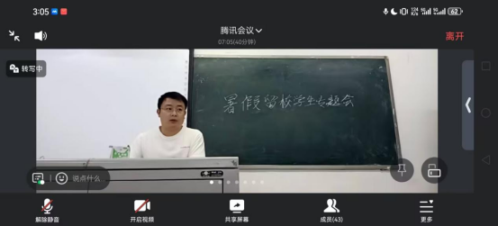 会议伊始,谭力川老师着重强调暑期留校安全的重要性。为此,学院推出暑期留校线上打卡模式,要求留校生在晚间规定时间完成打卡,以此实时掌握学生动态。此外,鉴于暑期学校将开展宿舍维护修缮工作,谭力川老师提醒留校生合理安排洗漱时间,按时完成内务整理,科学规划日常生活,确保宿舍环境整洁有序