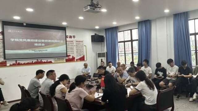 会议还传达了二级学院纪检工作推进会的精神,认真学习习近平总书记在纪念中国人民抗日战争暨世界反法西斯战争胜利70周年大会上的重要讲话,并强调要将抗战精神融入到党风廉政建设与师德师风建设工作中,以坚韧不拔的意志和严明的纪律要求自己。同时,布置了下一阶段学院在党风廉政建设与师德师风建设方面的具体工作,包括开展廉政教育讲座、组织师德师风自查自纠等,要求全体教职工积极参与,将各项工作作为自我提升、自我完善的重要契机。学院还将建立监督机制,对工作落实情况进行定期检查和评估,确保党风廉政建设与师德师风建设取得实效,为学院申硕工作及长远发展提供有力保障。