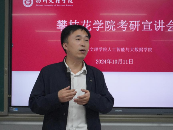 10月11日,我院于莲湖东区B101教室开展攀枝花学院与长江师范学院考研宣讲会。此次宣讲会旨在为考研学子们提供一次宝贵的学习交流机会,帮助他们明确考研目标,增强备考信心。会议由我院副院长刘笃晋教授主持。