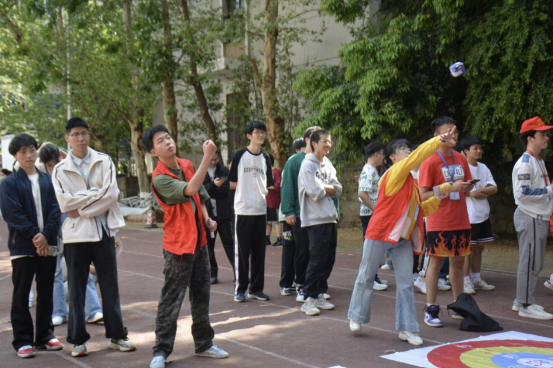 沙包显巧技,挑战砺锋芒。扔沙包项目现场,参赛选手们精准投掷,巧妙躲避,欢笑声和加油声此起彼伏。沙包在空中划出一道道弧线,精准命中目标,不仅展示了同学们出色的技巧和专注度,也体现了他们勇于挑战、不断超越自我的精神风貌。