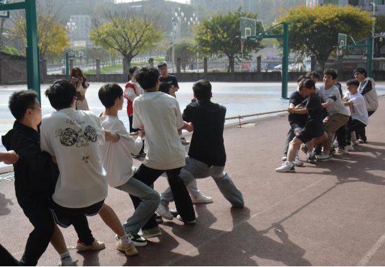 拔河聚众力,拼搏展担当。拔河比赛中,选手们紧握长绳,身体后倾,齐声呐喊,每一个队员都齐心协力、全力以赴。这场力量与智慧的较量,汗水与口号交织,不仅彰显“力合一处”的团结信念,更映照出新时代青年为集体荣誉而战的使命担当。