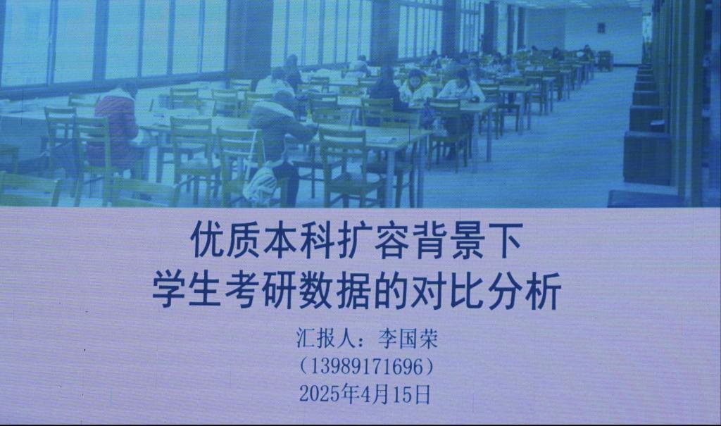 4月15日,在国家大力推动高等教育高质量发展、深化教育改革的政策春风吹拂下,学校图书馆馆长李国荣莅临我院,开展了名为‘优质本科扩容背景下学生考研数据对比分析’的专题讲座,为学生驱散考研途中的迷雾。