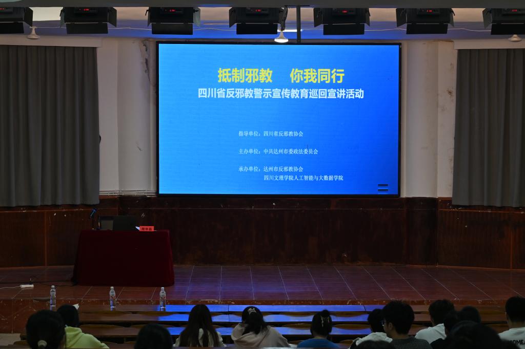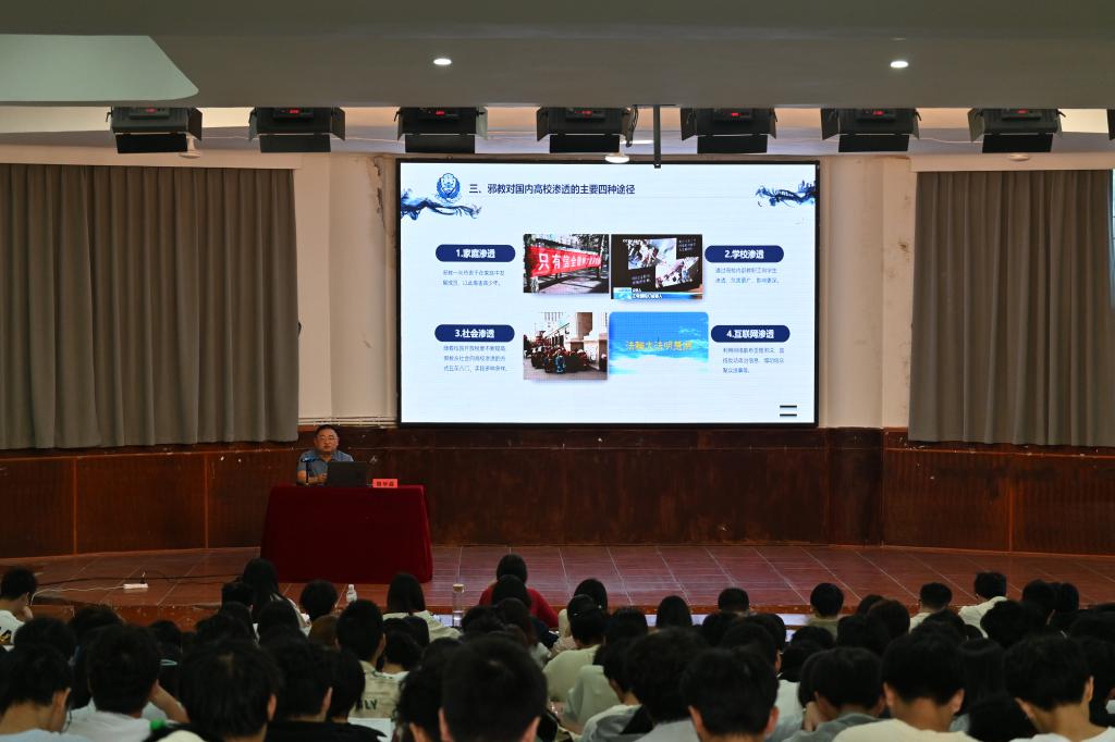 为切实提升全体师生识邪、辩邪、防邪、反邪意识与能力,9月26日,我院联合四川省反邪教协会在南坝校区学术报告厅举办“筑牢反邪防线,共建平安校园”主题知识讲座。活动面向南坝校区全体师生开展,特邀达州市公安局政保支队副支队长周华昌担任主讲。