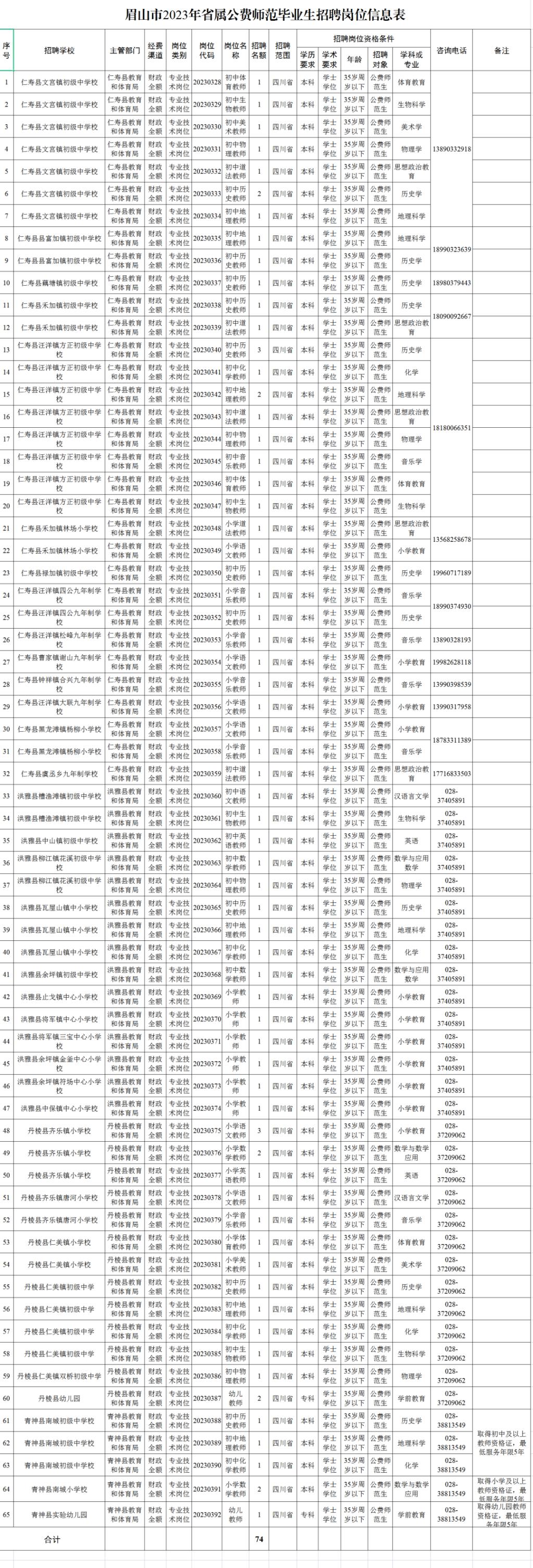 为做好2023年签约服务我市的省属公费师范毕业生就业安置工作,按照《关于开展师范生公费定向培养工作的实施意见》(川教〔2018〕83号)和《关于做好省级公费师范毕业生就业管理工作的通知》(川教函〔2020〕434号)相关规定,经研究,我市拟开展2023年省属公费师范毕业生公开考核招聘工作。现将有关事项公告如下。