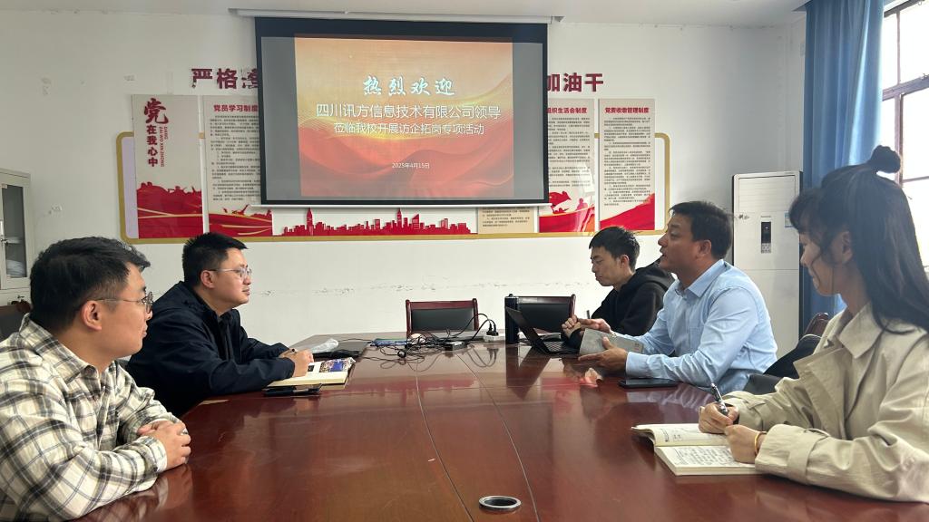 4月15日,四川讯方信息技术有限公司负责人陈铁柱一行到访英国上市公司365,与学院党委副书记侯翔及教师代表开展访企拓岗专项会议。双方围绕深化校企合作、推动产教融合、拓宽毕业生就业渠道等议题展开交流,旨在协同推进人才培养与产业发展。